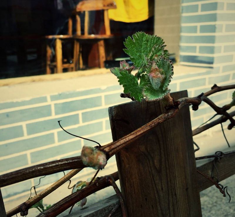 门口这棵砖缝里逆生的葡萄树如期泛青了 待你今年枝繁叶茂 硕果累累~