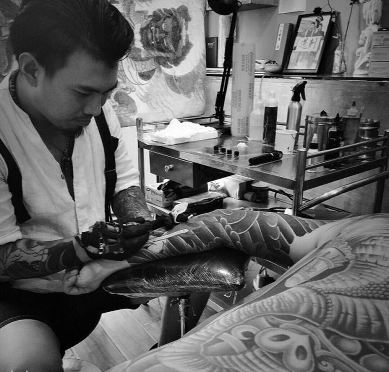 黑灰满背纹身图案