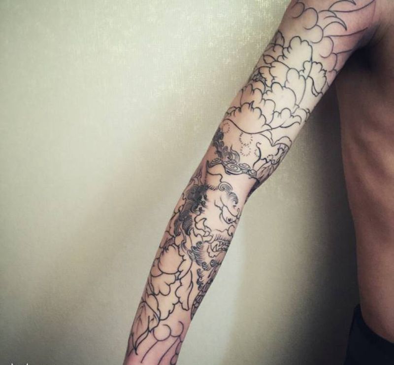 当前位置: 首页 >河南省鹤壁市纹身店-刺艺堂—刺道纹身图案>今日花臂进度~纹身图片