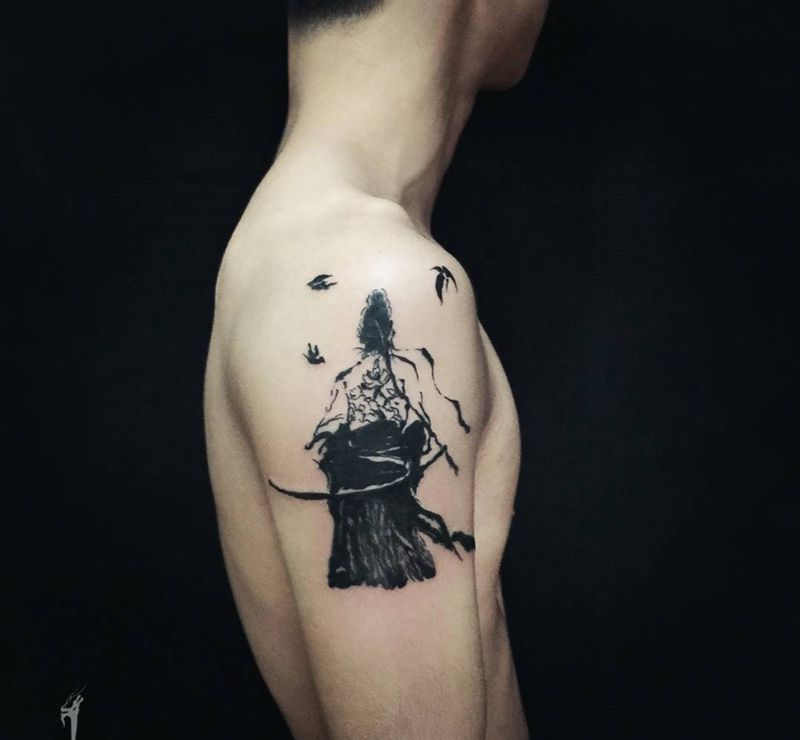 • 纹身吧推荐的披肩图腾半胛纹身图案作品展示
