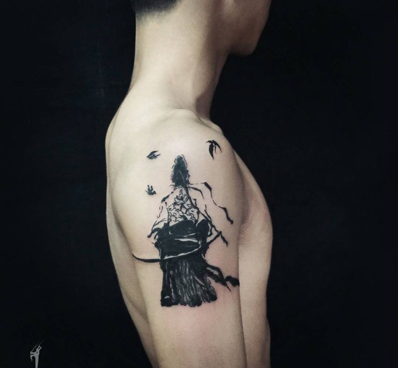 • 纹身吧推荐的披肩图腾半胛纹身图案作品展示