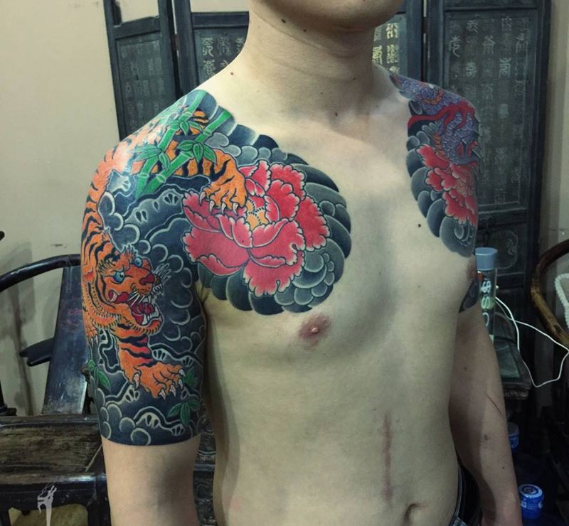 • 女性大花胸纹身_43张霸气漂亮的女性大花胸纹身图案作品