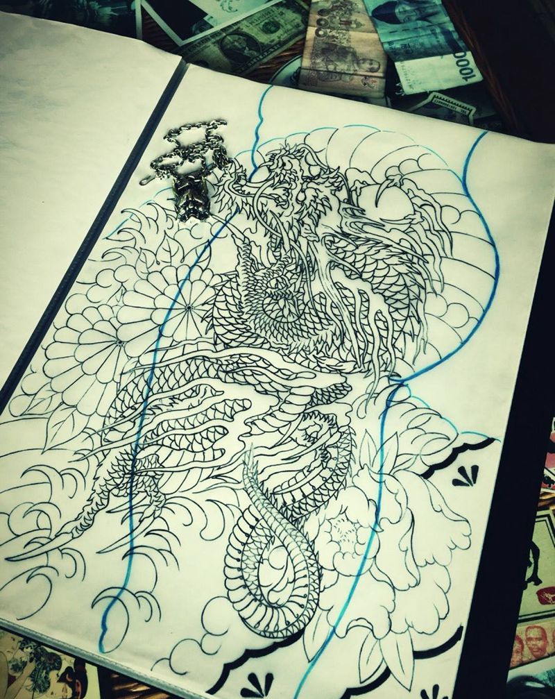 • T网红王老大花腿龙纹身图片_腿部新传统纹身图案