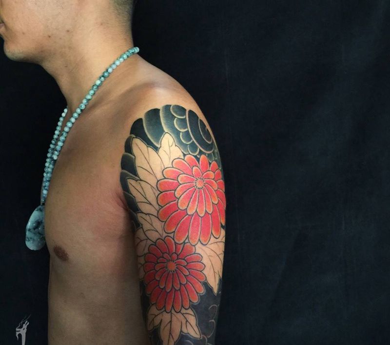 • 纹身吧推荐的披肩图腾半胛纹身图案作品展示