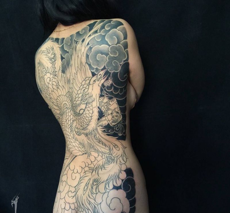 黑灰满背纹身图案