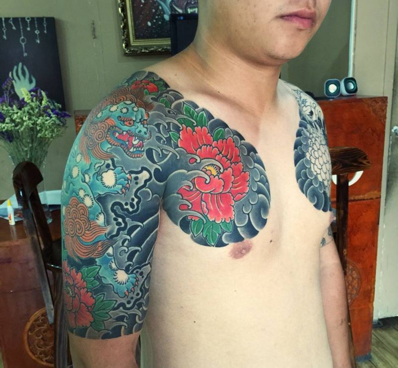 • 女性大花胸纹身_43张霸气漂亮的女性大花胸纹身图案作品