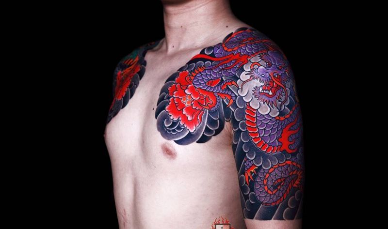 • T云龙九郎纹身图片_背部老传统云龙九郎纹身图案