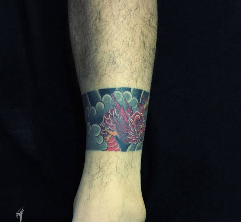 • T网红王老大花腿龙纹身图片_腿部新传统纹身图案