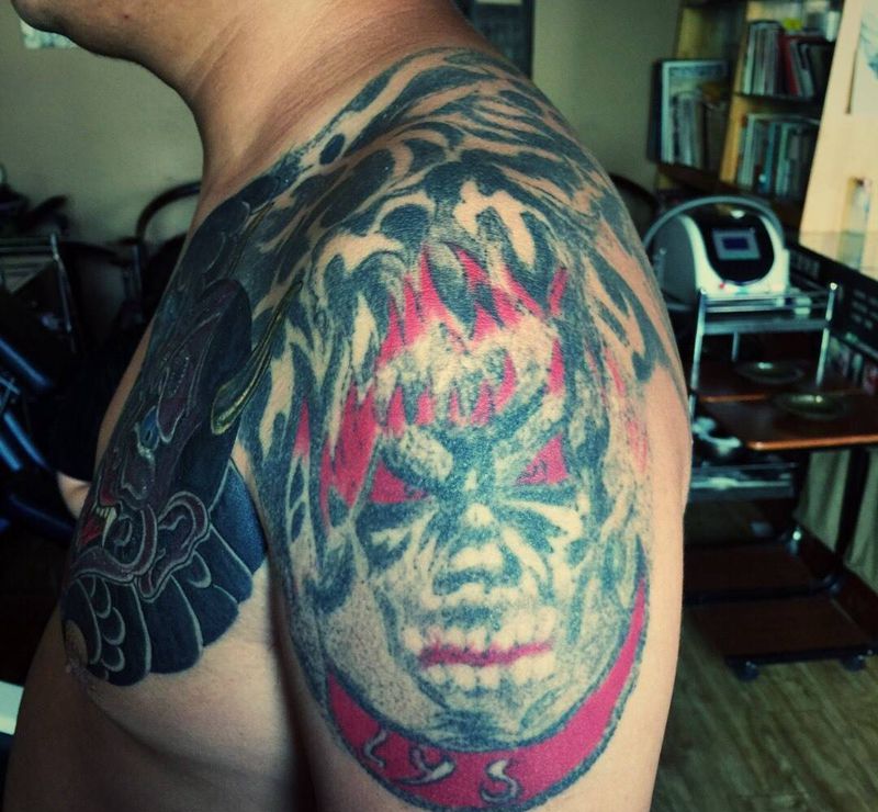 当前位置: 首页 >河南省鹤壁市纹身店-刺艺堂—刺道纹身图案>强力盖今日进度~纹身图片