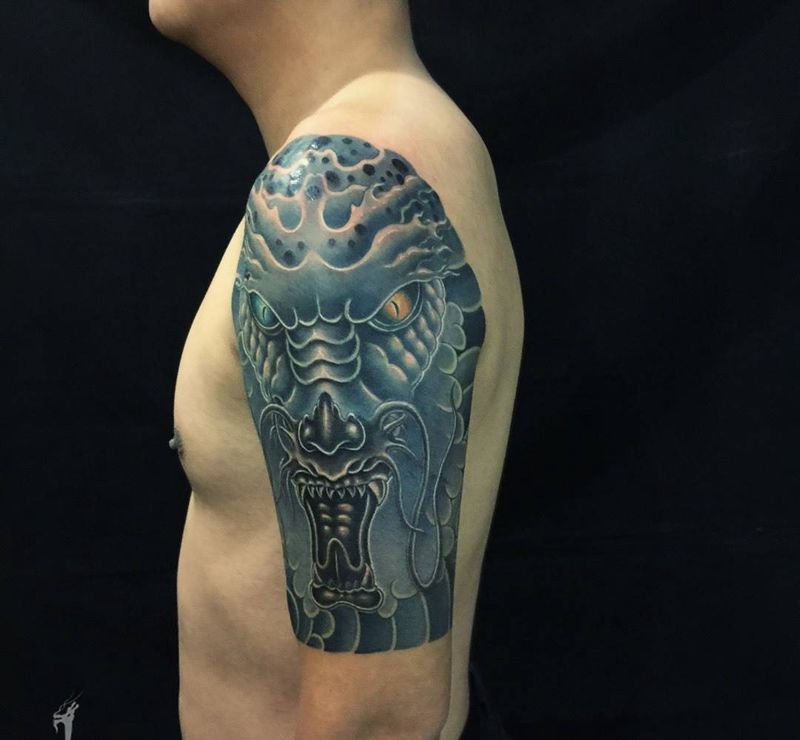 • 纹身吧推荐的披肩图腾半胛纹身图案作品展示