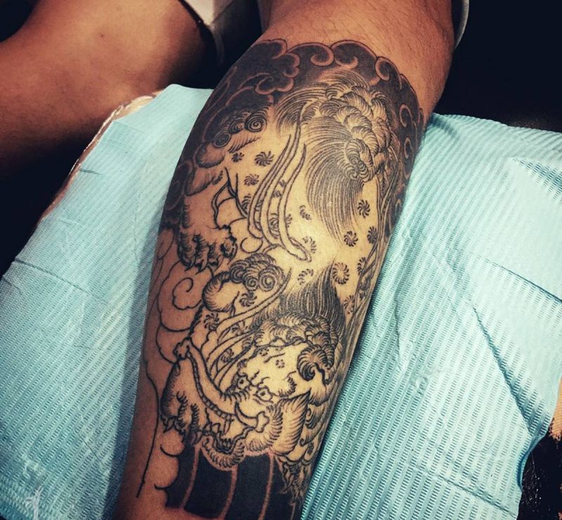 • T网红王老大花腿龙纹身图片_腿部新传统纹身图案