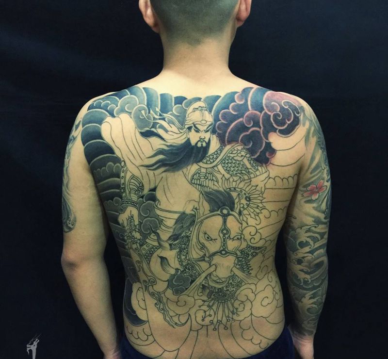 • T云龙九郎纹身图片_背部老传统云龙九郎纹身图案