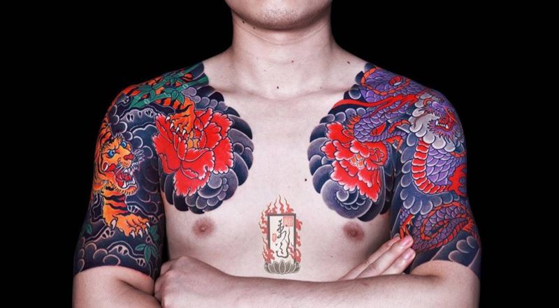 • T云龙九郎纹身图片_背部老传统云龙九郎纹身图案