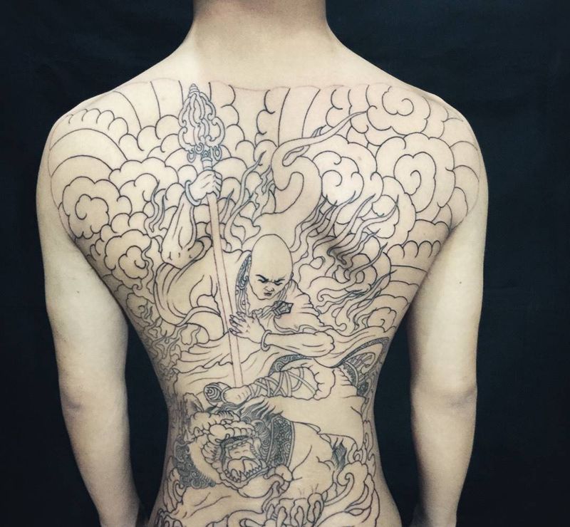 • T云龙九郎纹身图片_背部老传统云龙九郎纹身图案