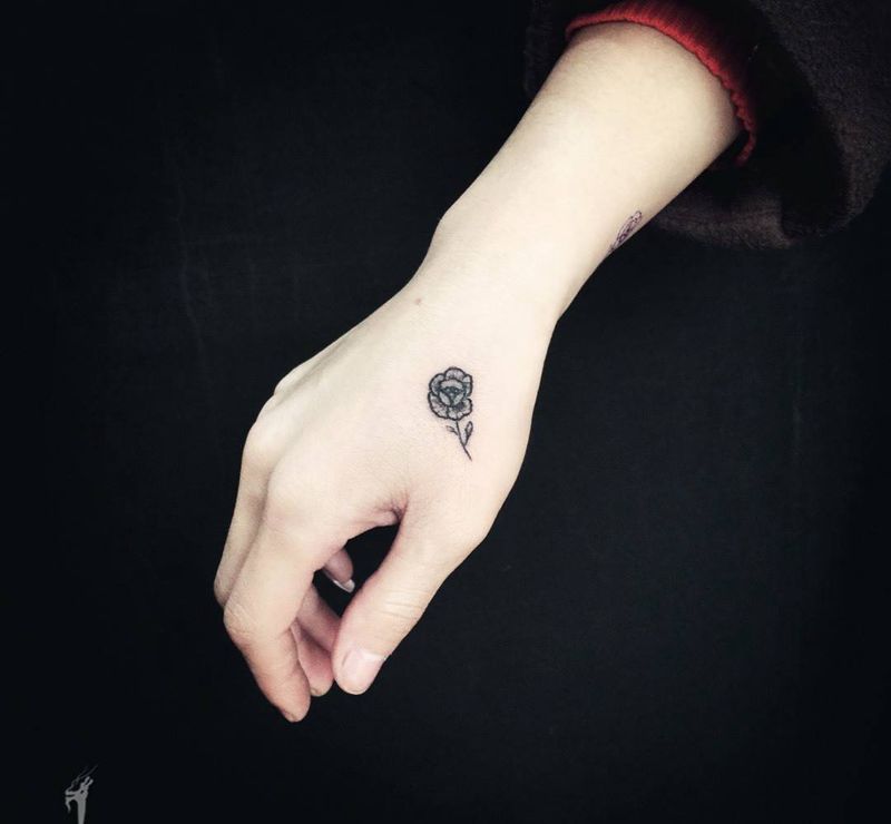 • 手背潮流时尚的玫瑰花眼睛纹身图案