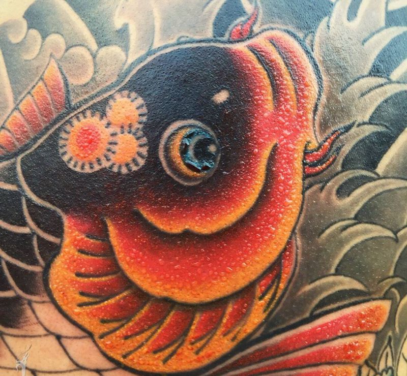 • T包小腿吹火男+阿多福纹身图片_腿部老传统新传统吹火男阿