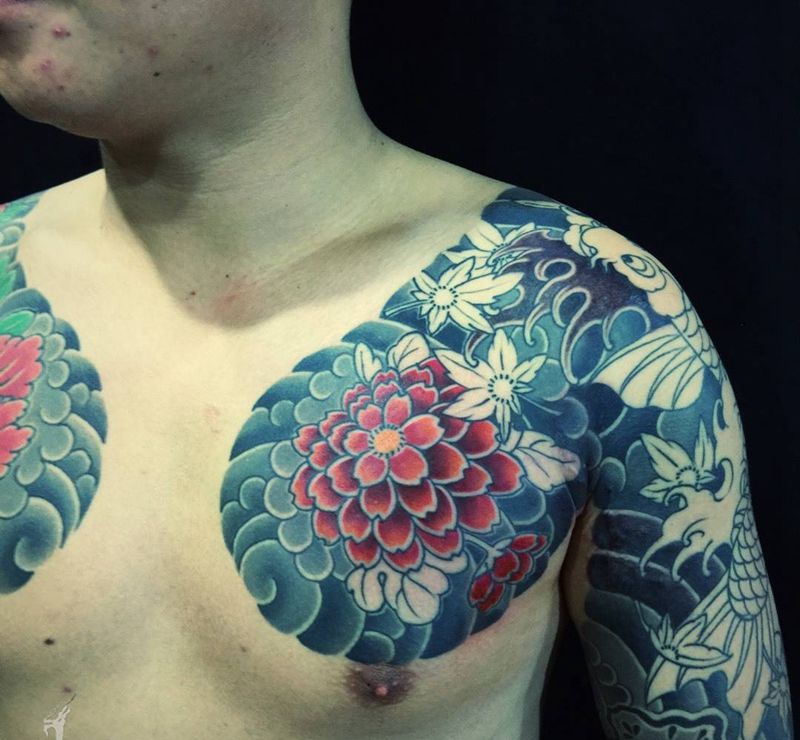 • 女性大花胸纹身_43张霸气漂亮的女性大花胸纹身图案作品