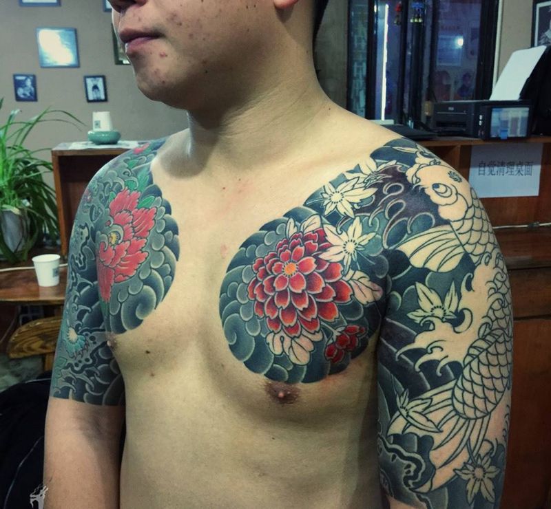 • 女性大花胸纹身_43张霸气漂亮的女性大花胸纹身图案作品