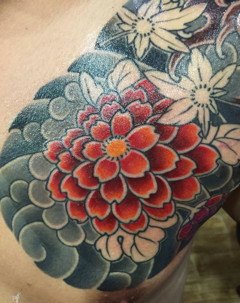 • 女性大花胸纹身_43张霸气漂亮的女性大花胸纹身图案作品