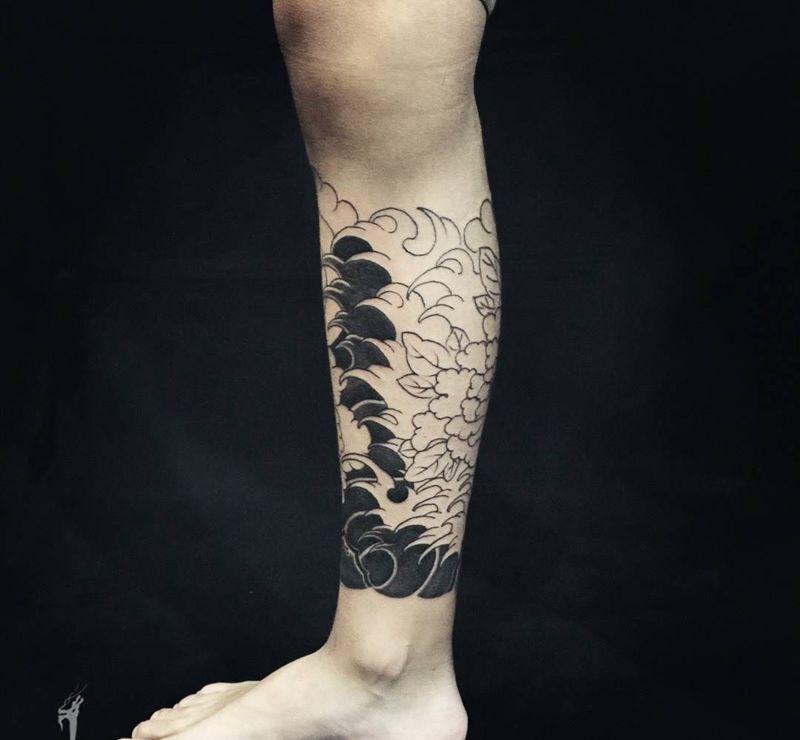 • T网红王老大花腿龙纹身图片_腿部新传统纹身图案