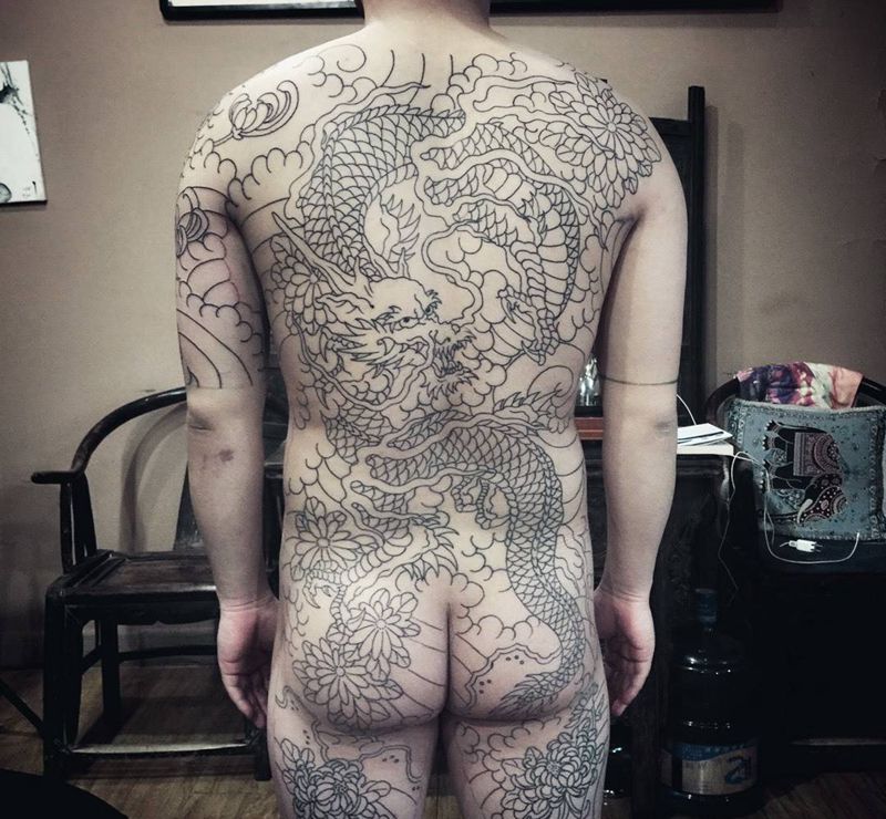 • T云龙九郎纹身图片_背部老传统云龙九郎纹身图案