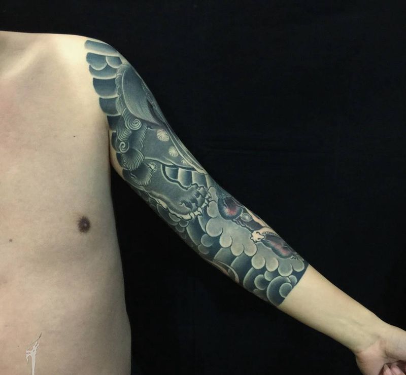 当前位置: 首页 >河南省鹤壁市纹身店-刺艺堂—刺道纹身图案>今工进度《食梦貘》~纹身图片