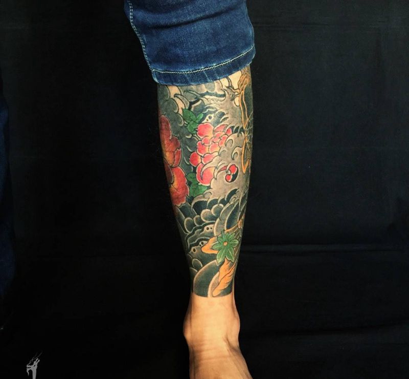 当前位置: 首页 >河南省鹤壁市纹身店-刺艺堂—刺道纹身图案>今日包腿~纹身图片