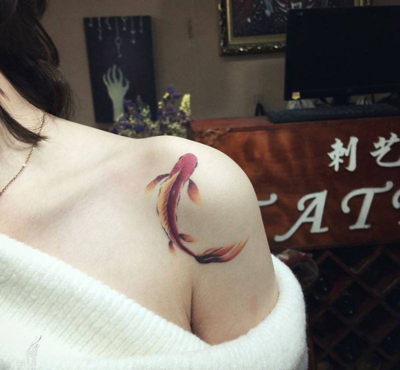 刺艺堂-彫茜老师今日双鱼作品~纹身图片