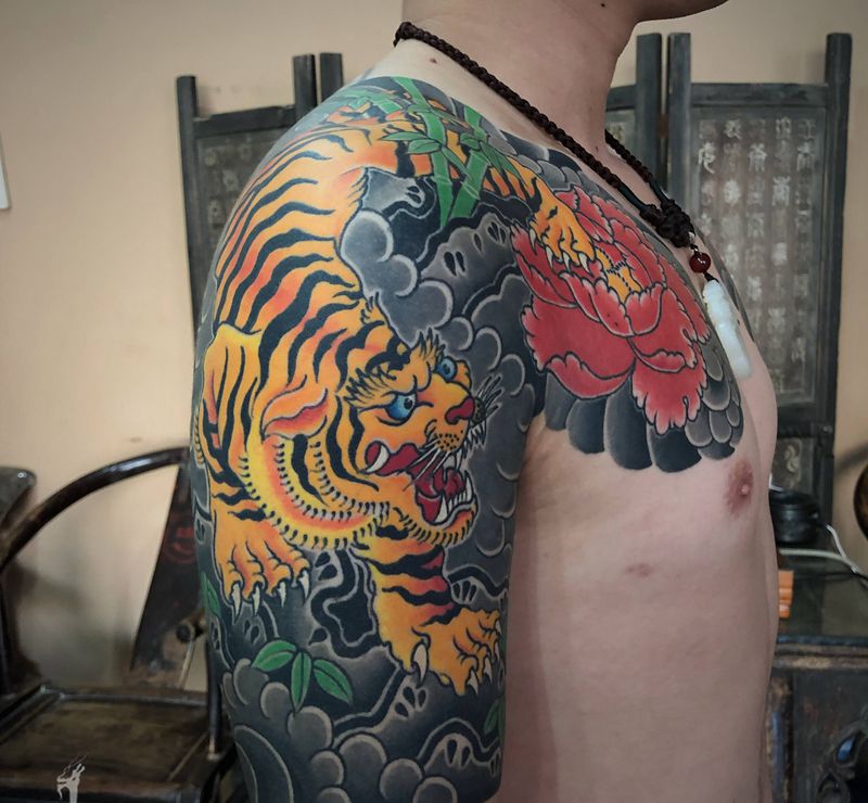当前位置: 首页 >河南省鹤壁市纹身店-刺艺堂—刺道纹身图案>右胛恢复九个月后~纹身图片_胸部手臂老传统纹身图案