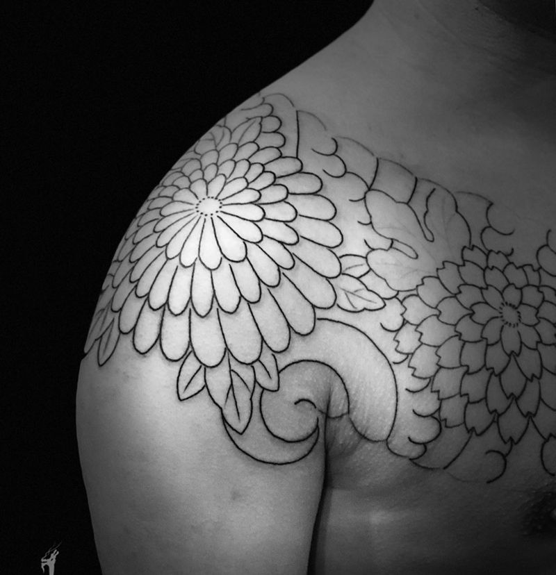 • 女性大花胸纹身_43张霸气漂亮的女性大花胸纹身图案作品