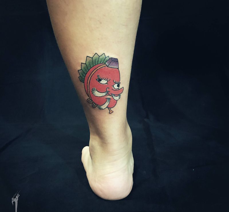 • T包小腿吹火男+阿多福纹身图片_腿部老传统新传统吹火男阿