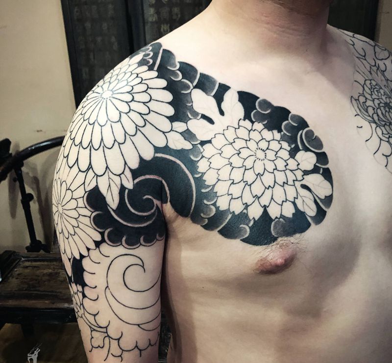 • 女性大花胸纹身_43张霸气漂亮的女性大花胸纹身图案作品