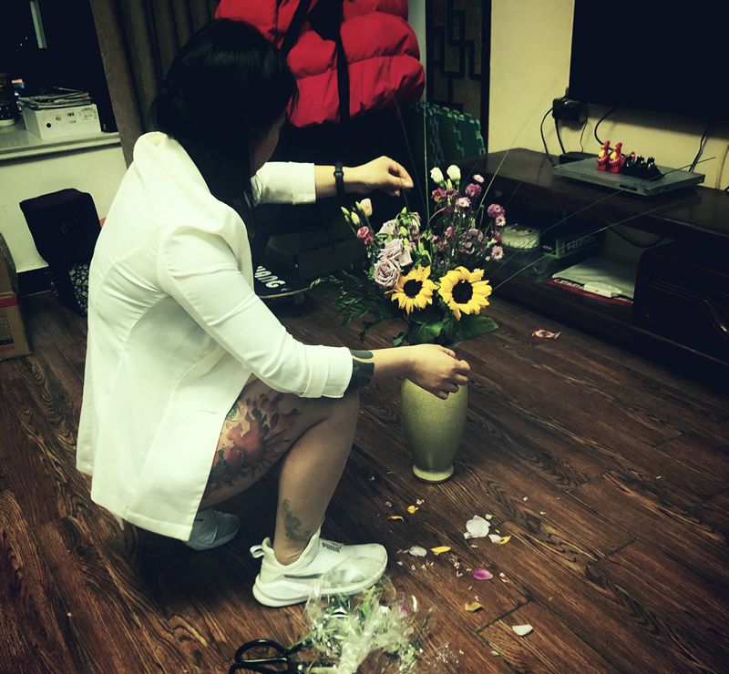 当前位置: 首页 >河南省鹤壁市纹身店-刺艺堂—刺道纹身图案>有花得有瓶 瓶还要是钧瓷~纹身图片_老传统纹身图案