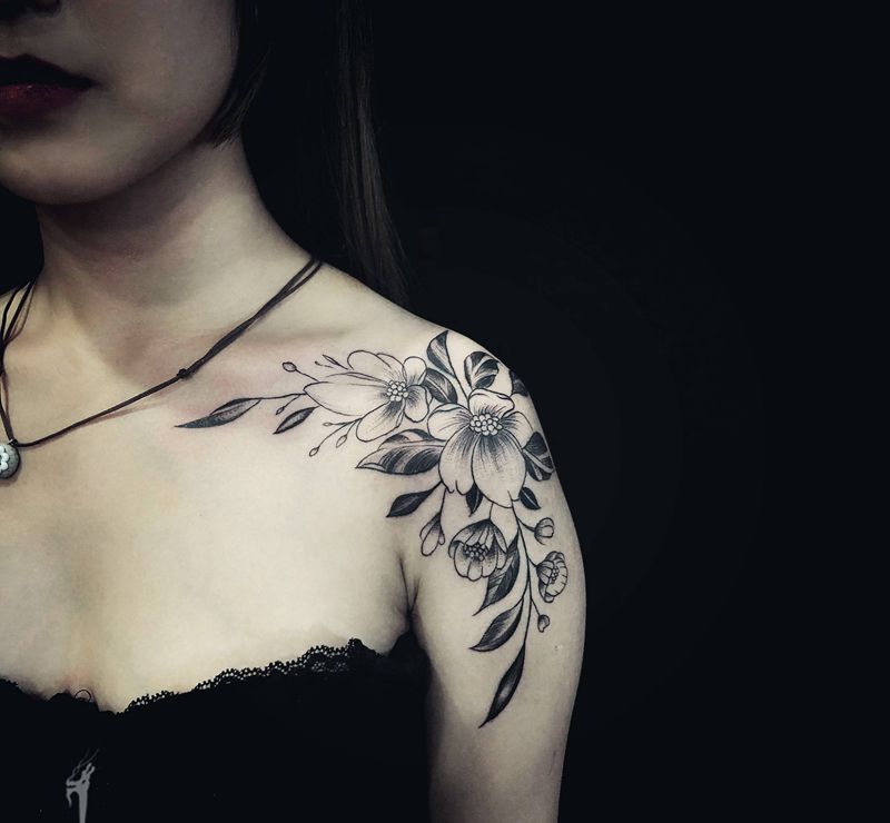 • 女性大花胸纹身_43张霸气漂亮的女性大花胸纹身图案作品