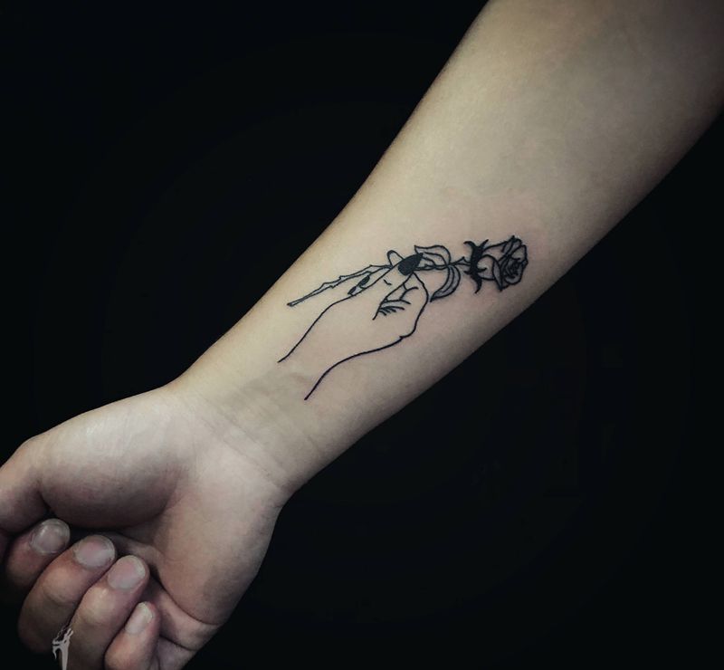 • 手背潮流时尚的玫瑰花眼睛纹身图案