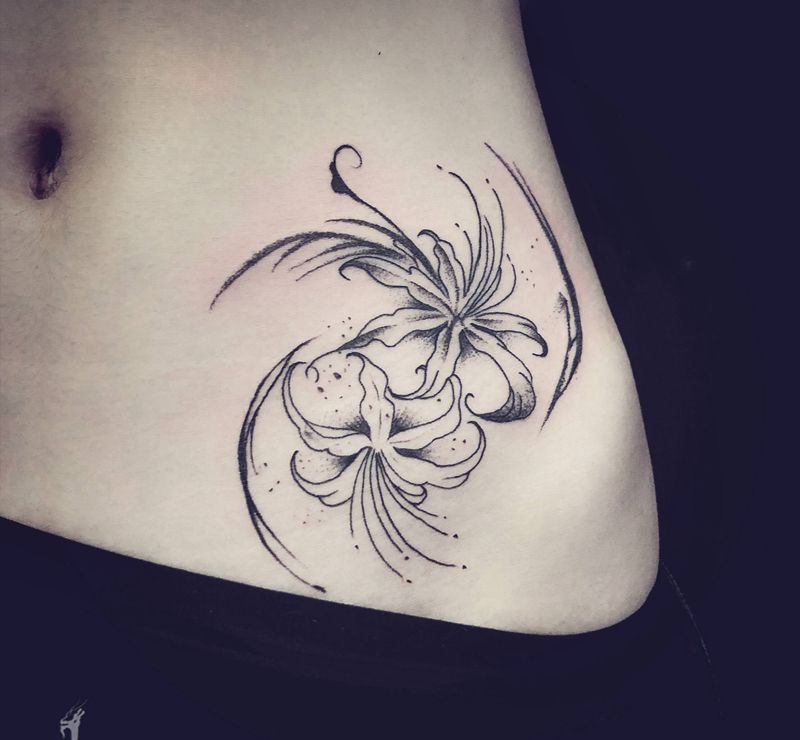 • 时尚性感的腹部莲花纹身图案