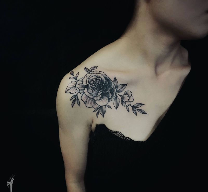 • 女性大花胸纹身_43张霸气漂亮的女性大花胸纹身图案作品