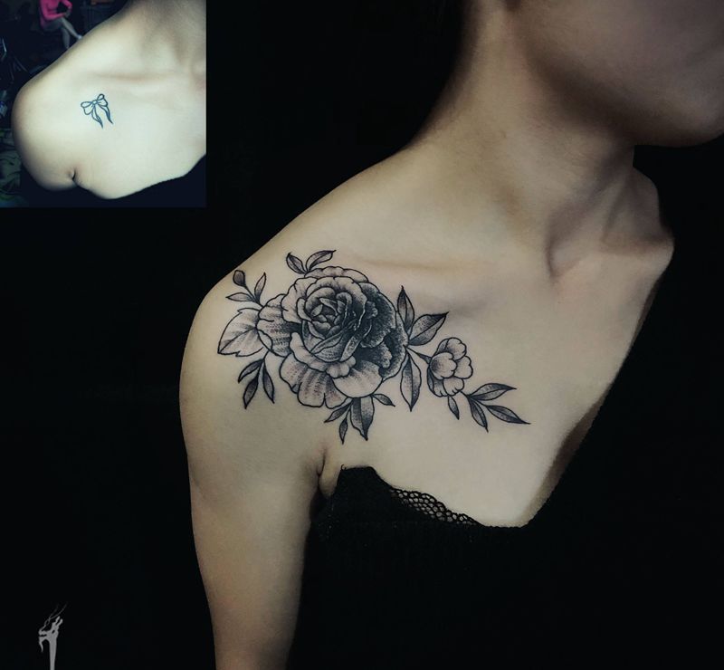 • 女性大花胸纹身_43张霸气漂亮的女性大花胸纹身图案作品