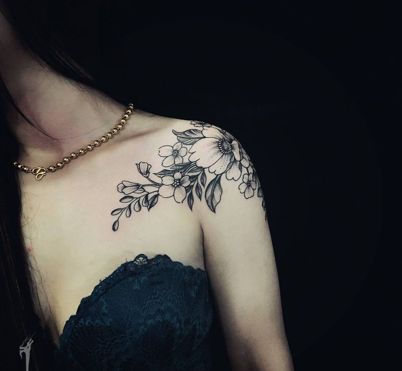 • 女性大花胸纹身_43张霸气漂亮的女性大花胸纹身图案作品