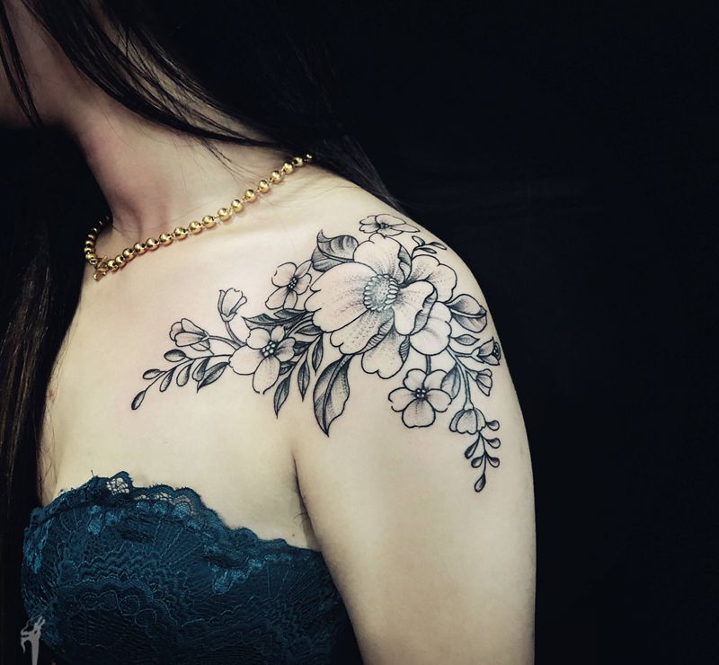 • 女性大花胸纹身_43张霸气漂亮的女性大花胸纹身图案作品