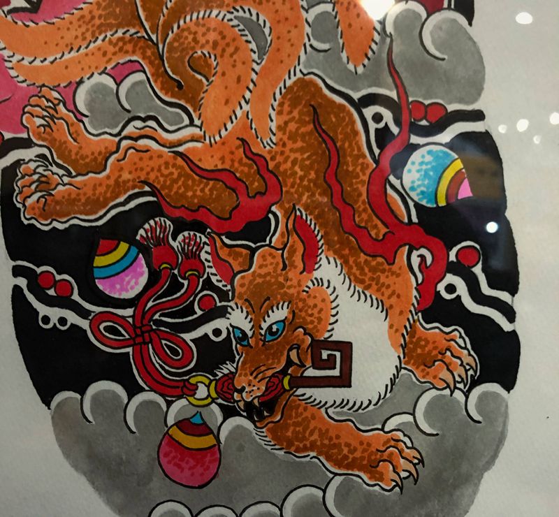 当前位置: 首页 >河南省鹤壁市纹身店-刺艺堂—刺道纹身图案>青丘之山有兽焉 其状如狐而九尾纹身图片_老传统纹身图案