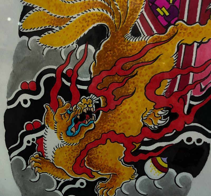 当前位置: 首页 >河南省鹤壁市纹身店-刺艺堂—刺道纹身图案>青丘之山有兽焉 其状如狐而九尾纹身图片_老传统纹身图案