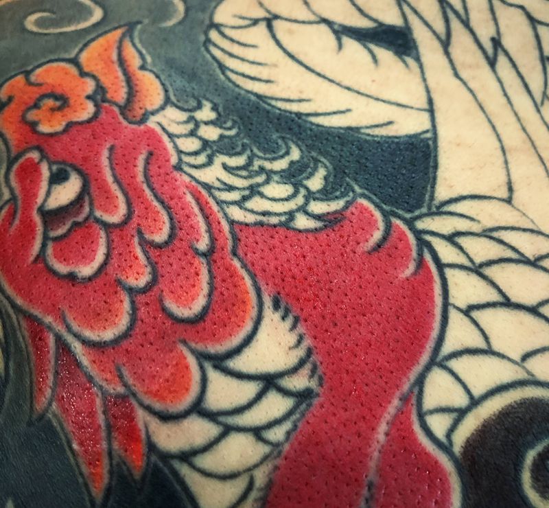 • T网红王老大花腿龙纹身图片_腿部新传统纹身图案