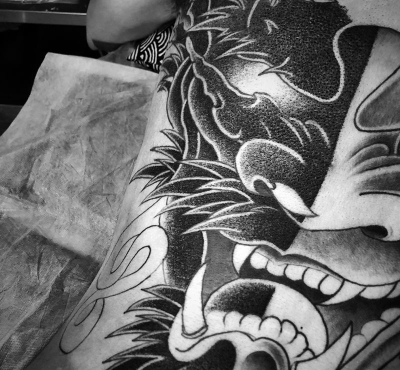 • 黑灰满背纹身图案