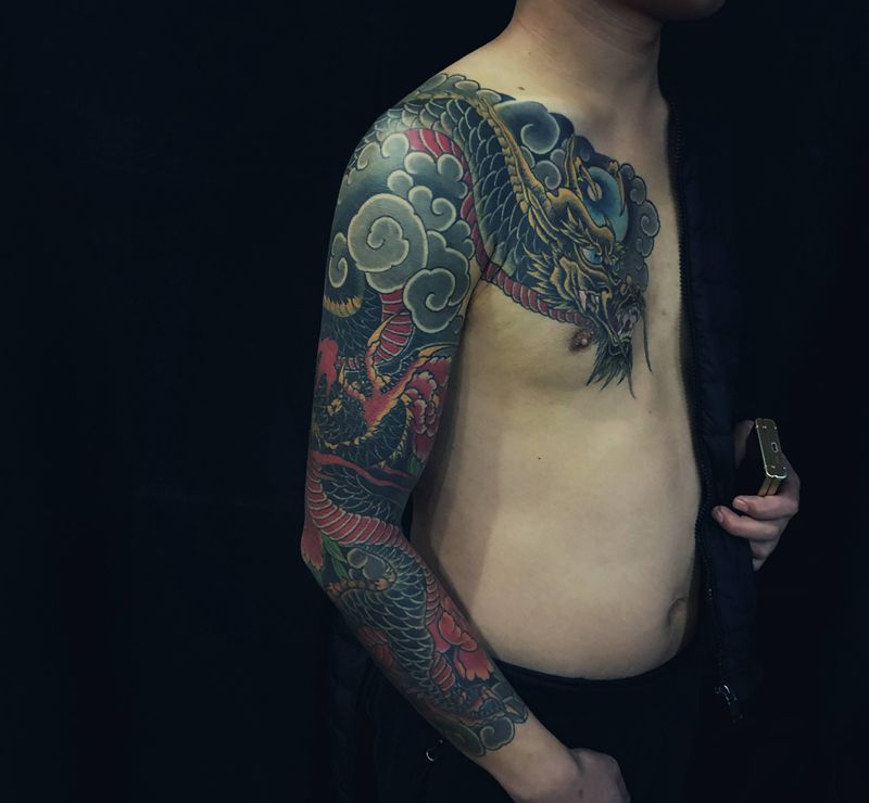 • T云龙九郎纹身图片_背部老传统云龙九郎纹身图案