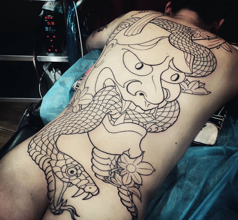 黑灰满背纹身图案