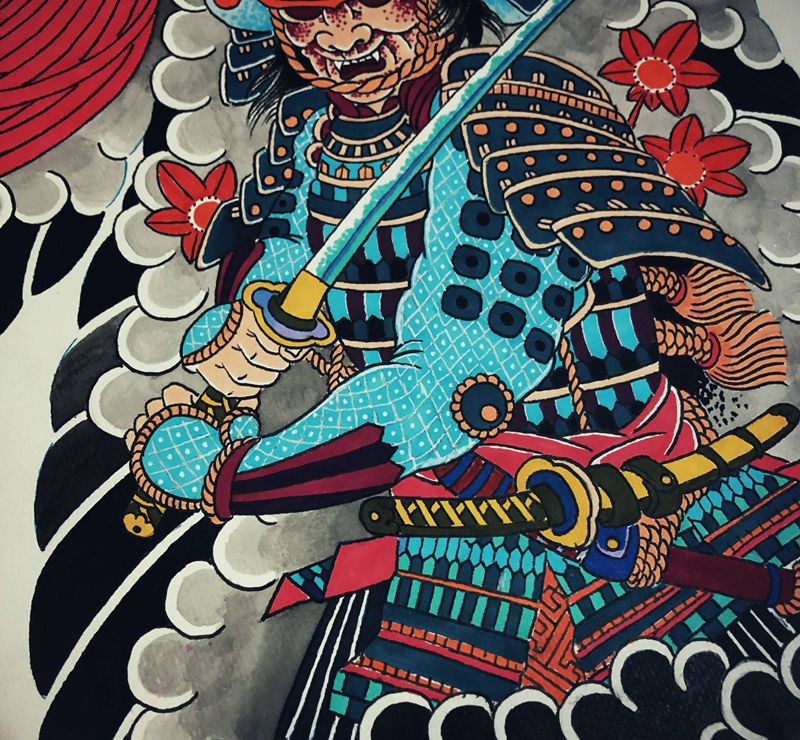 当前位置: 首页 >河南省鹤壁市纹身店-刺艺堂—刺道纹身图案>半胛鬼武士纹身图片_老传统纹身图案