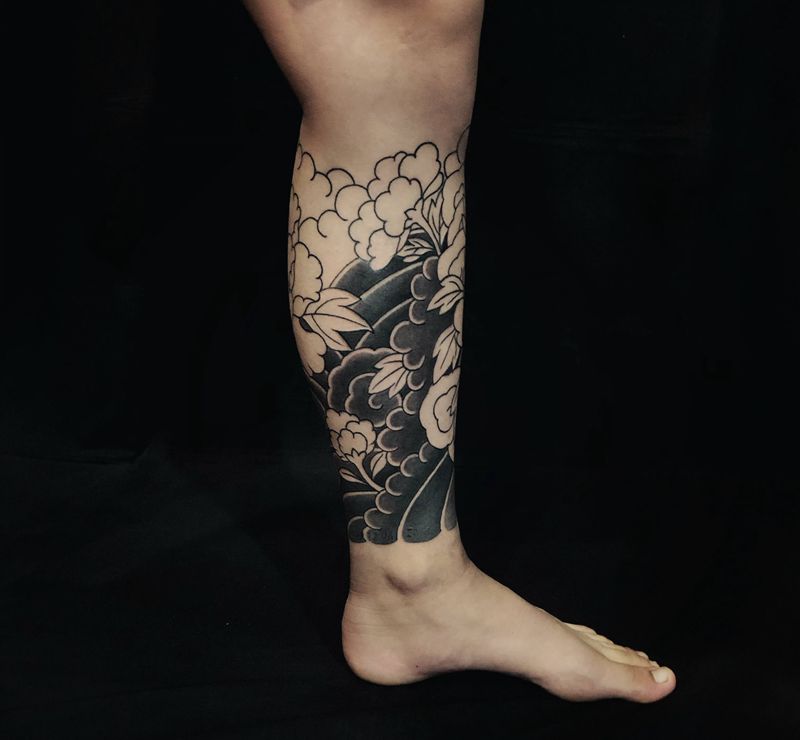 • T网红王老大花腿龙纹身图片_腿部新传统纹身图案