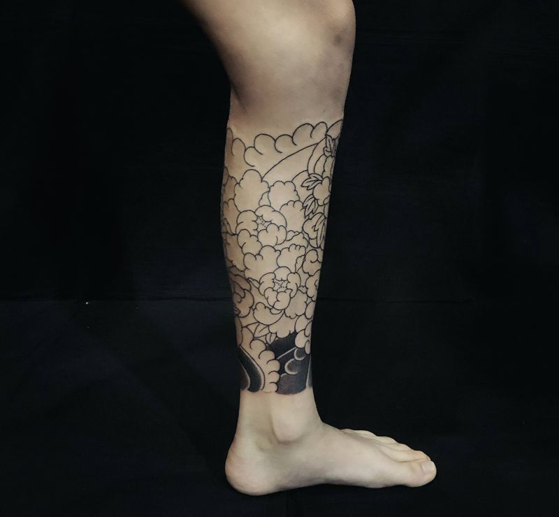 • T网红王老大花腿龙纹身图片_腿部新传统纹身图案