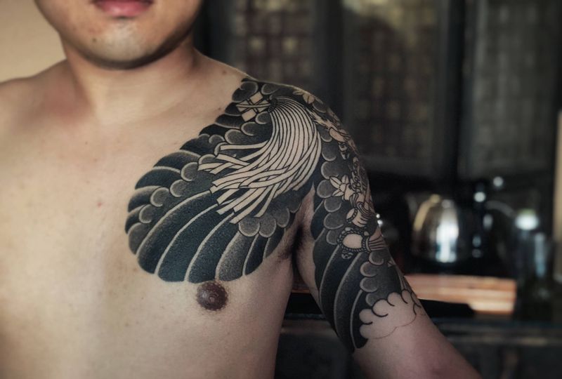 当前位置: 首页 >河南省鹤壁市纹身店-刺艺堂—刺道纹身图案>武士半胛进度~纹身图片_老传统纹身图案